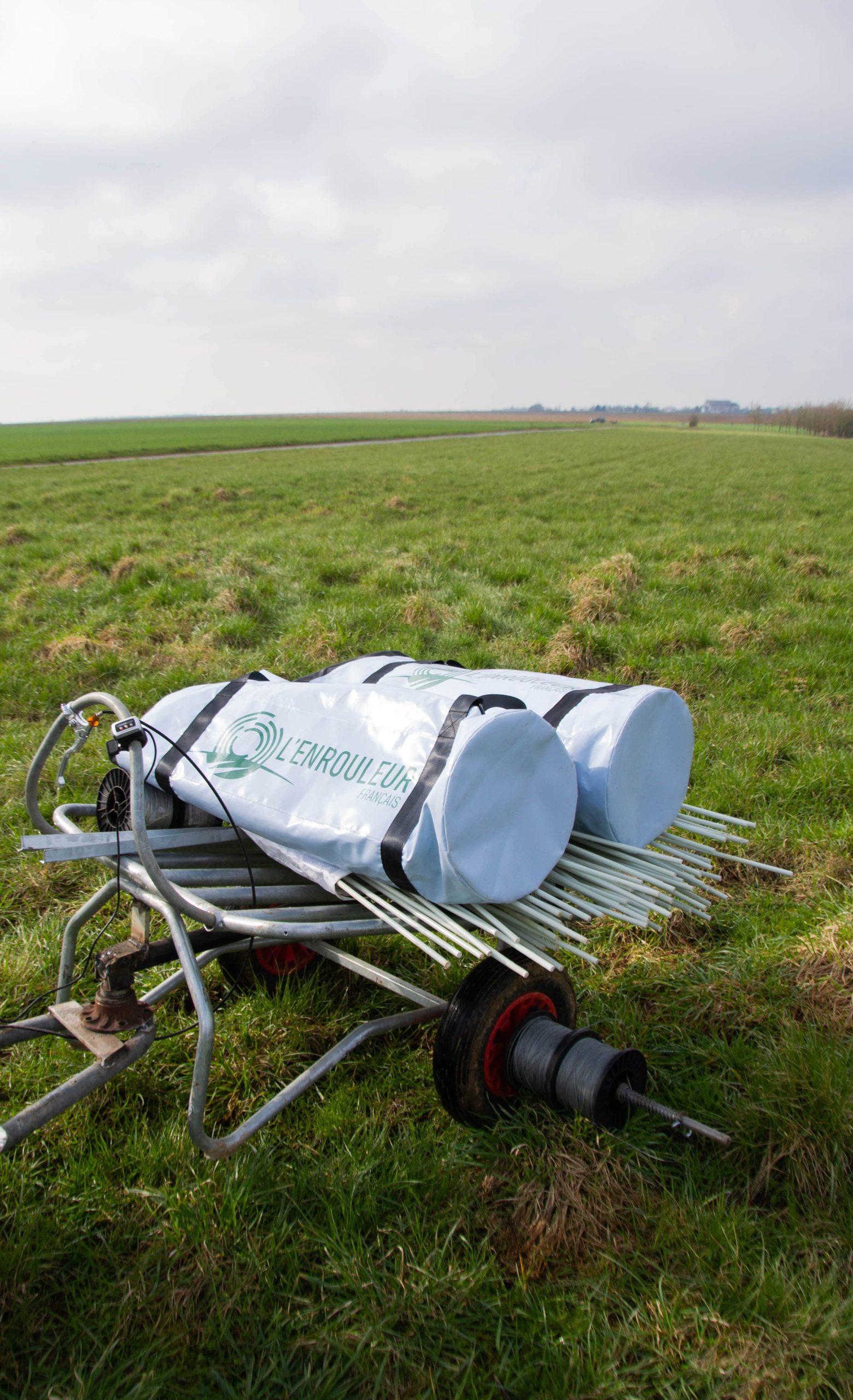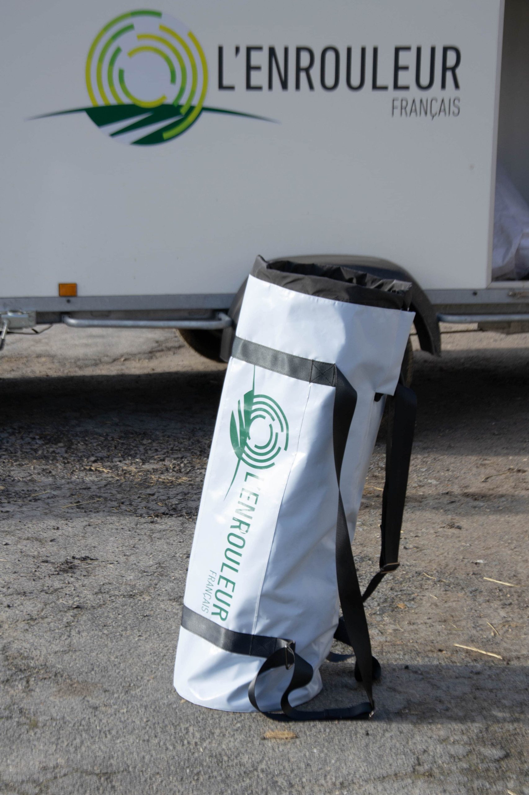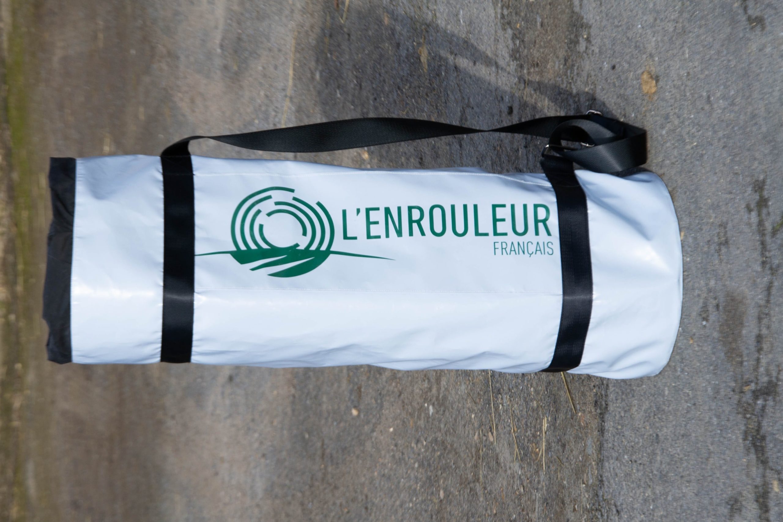 Le design intègre le logo de l’Enrouleur Français, pensé pour rester visible lors des déplacements et des manipulations sur le terrain, renforçant l’image professionnelle et technologique du produit.