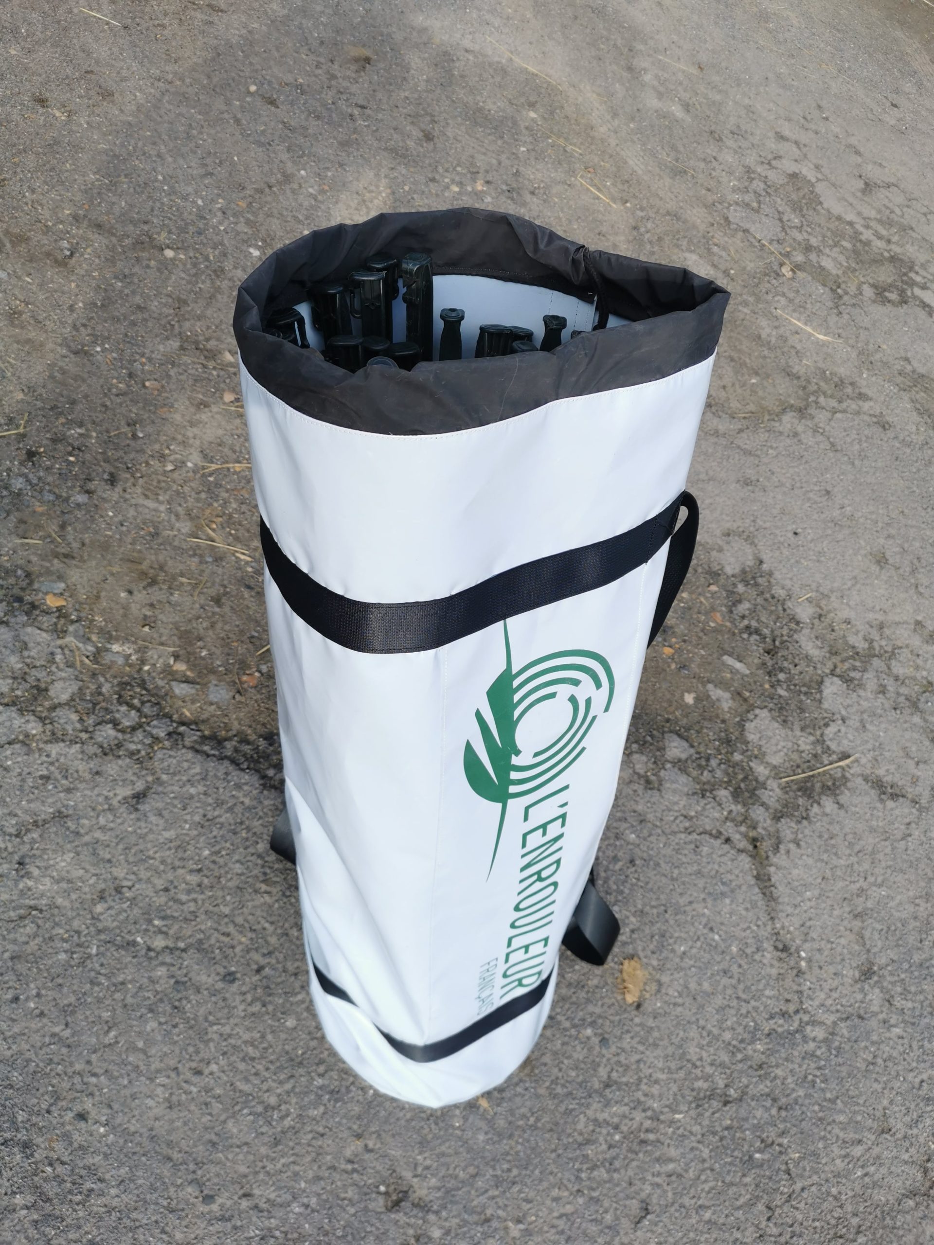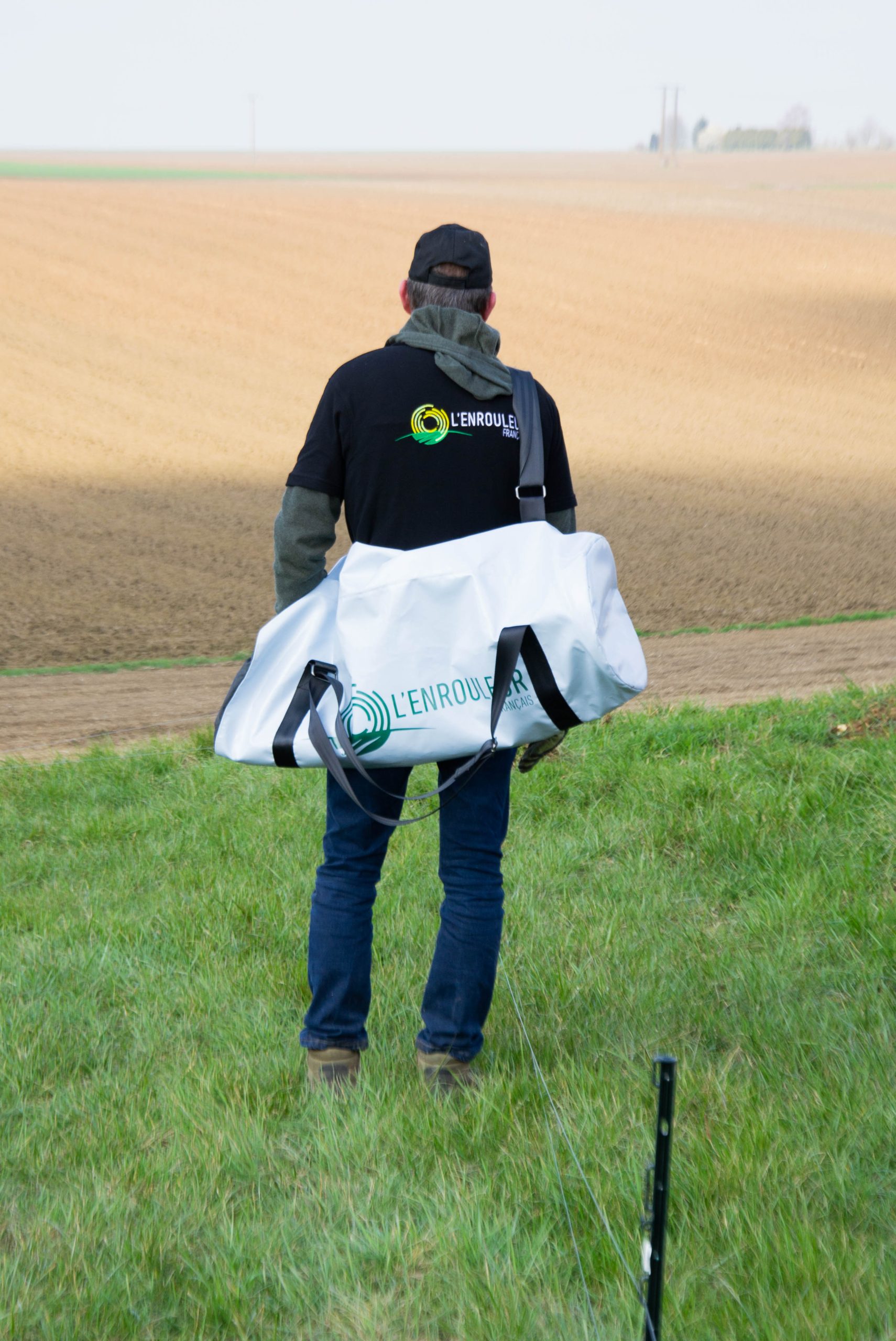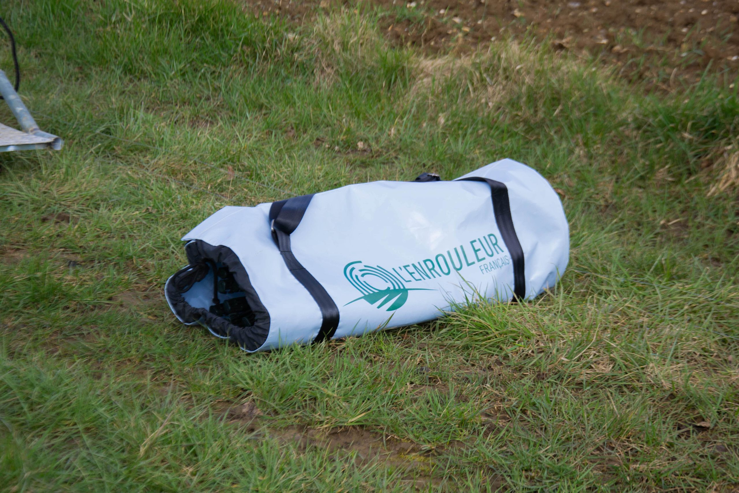 Le design intègre le logo de l’Enrouleur Français, pensé pour rester visible lors des déplacements et des manipulations sur le terrain, renforçant l’image professionnelle et technologique du produit.